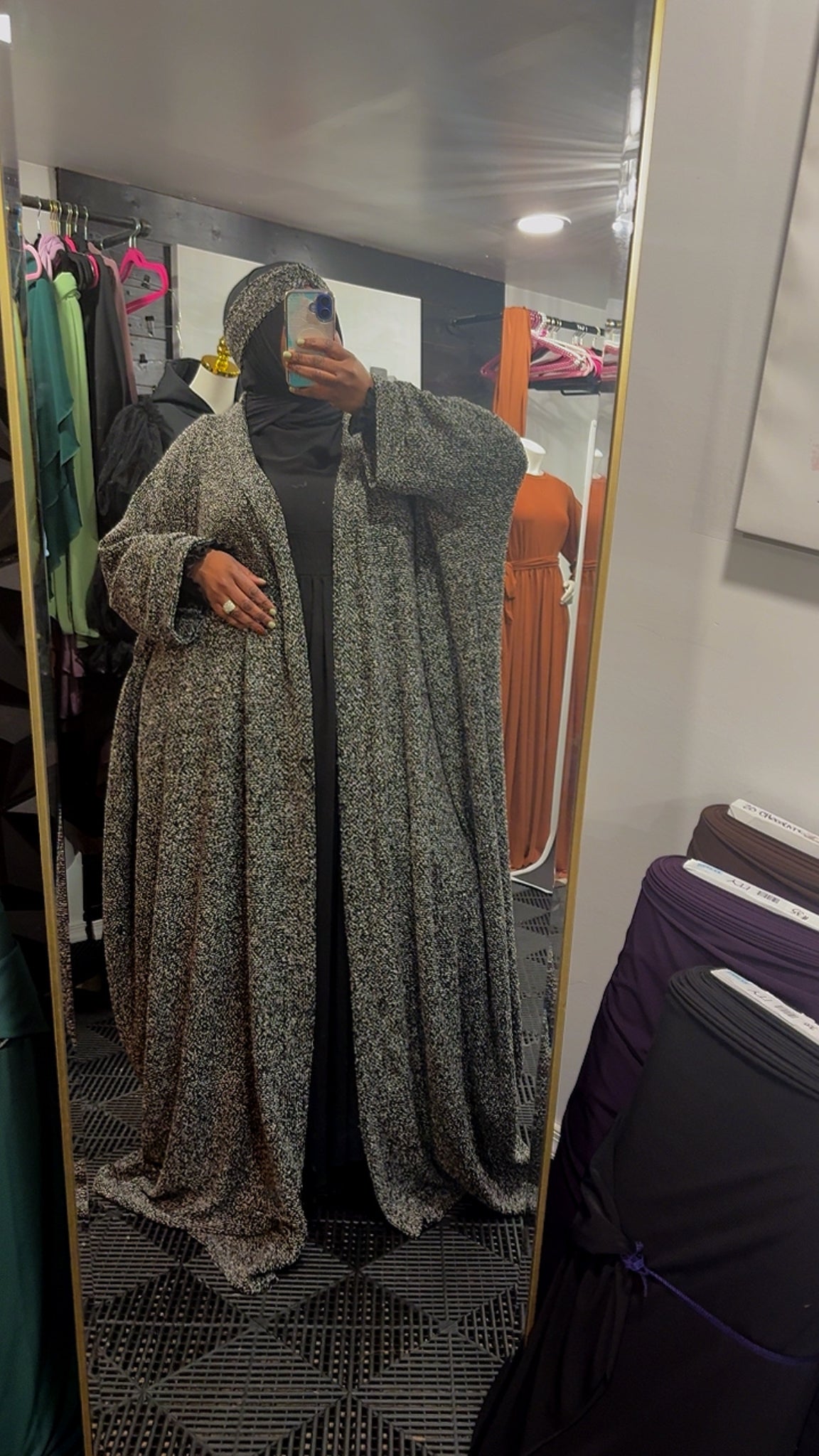 The Sabirah is an oversized sweater that’s perfect for the fall/winter season. It’s constructed of a lightweight knit fabric . It’s features: